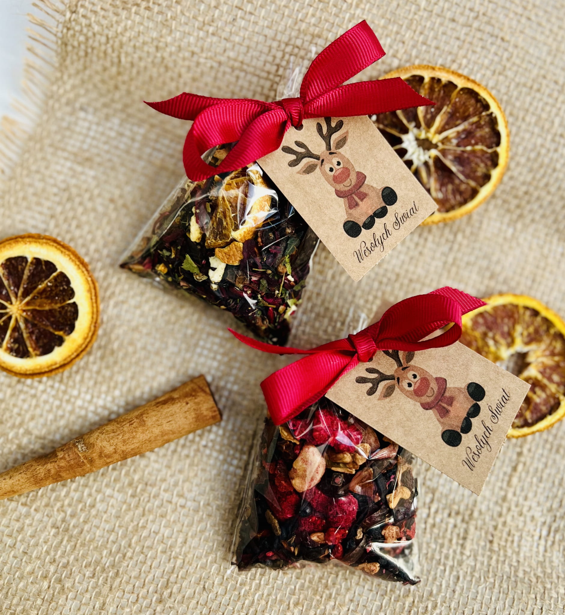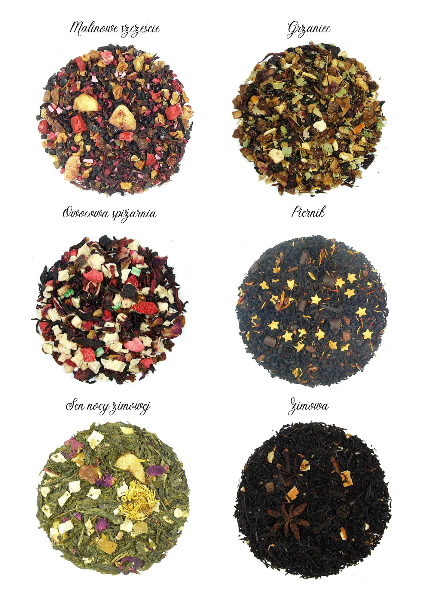 5.Zimowa : Czarna herbata Ceylon, goździki, anyż , cynamon, rodzynki, skórka pomarańczy.