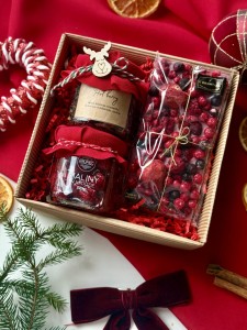 Całość pięknie zapakowana na prezent . Gałązka, ozdoba świateczna , wstążka bordo, czerwona lub zielona.